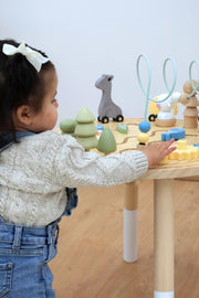 ¡Explora un mundo de diversión y aprendizaje con nuestra mesa de actividades de madera para niños! Esta encantadora mesa está llena de juegos interactivos que mantendrán a tus pequeños entretenidos y estimulados.